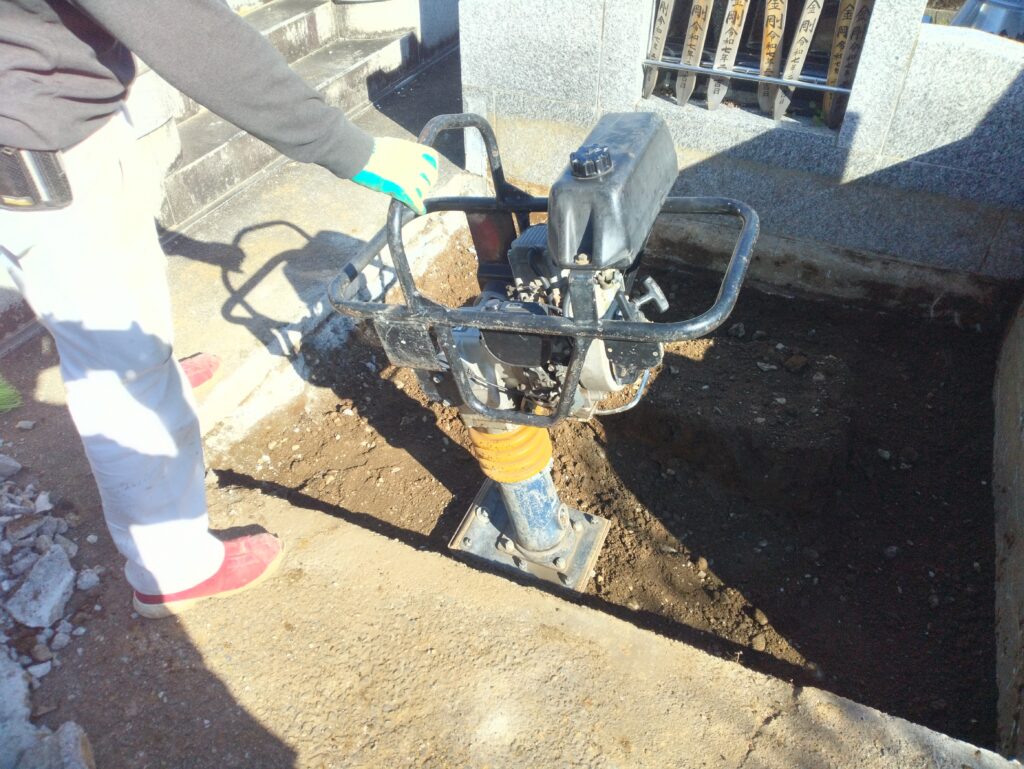 後日ご住職による地鎮祭の後、まずはお墓の基礎工事からはじめます。